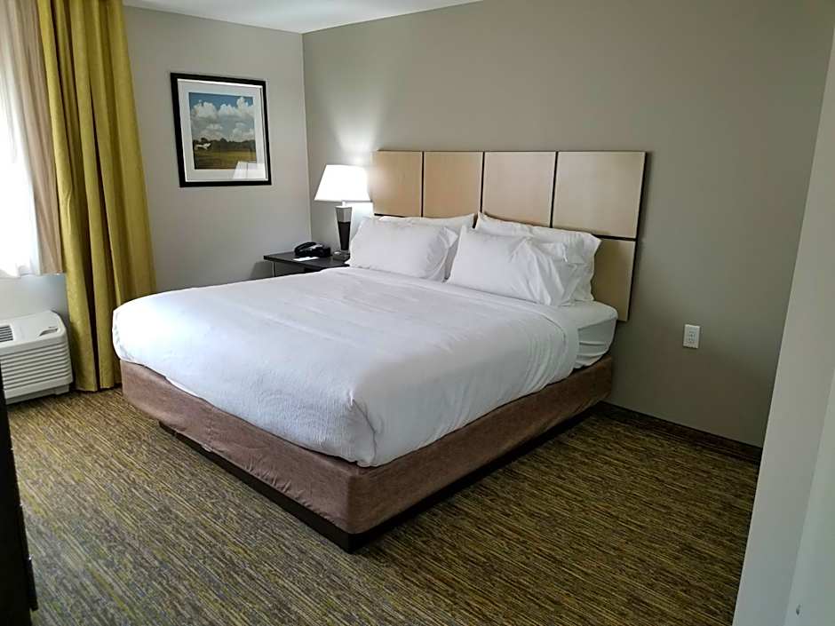 1 Queen Bed Studio Suite Full Kitchen is 75 square feet and includes a queen-size bed 150-154 width plus extra beds on demand and tea and coffee making facilities .